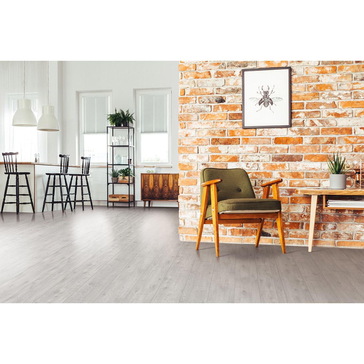 Влагостойкий ламинат Westerhof Effect маркирован 32 классом эксплуатационного ресурса. У него отличное качество, повышенная прочность многослойных ламелий и гарантия от производителя на двадцать лет. У досок замковое соединение Uniclic и однополосный дизайн с имитацией фактуры натурального дерева, который подчеркивает глубокое реалистичное тиснение декоративной поверхности. Толщина панелей 12 миллиметров. Ламинированный пол быстро монтируется на деревянной, бетонной или другой черновой поверхности, в готовом виде выглядит как настоящий настил из массива натурального дерева.